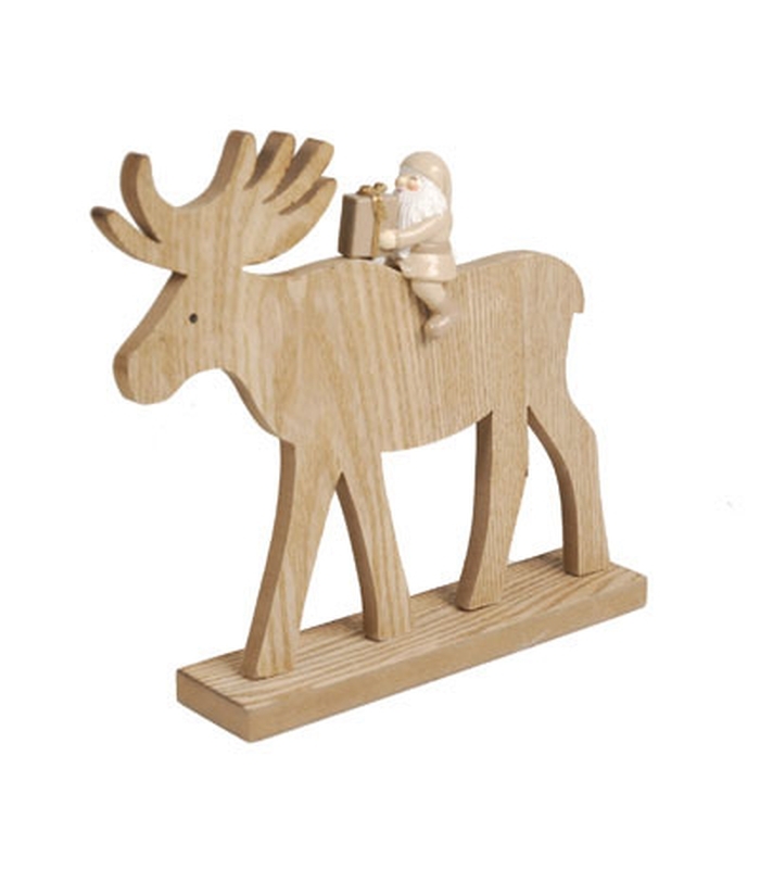 WOODEN DEER WITH RESIN SANTA 21X4.5X20 CM