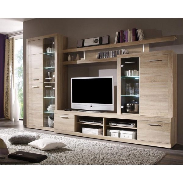 ΣΥΝΘΕΣΗ BERLIN ΣΕΤ/4 SONOMA ΟΑΚ ΜΕ ΦΩΤΙΣΜΟ (ΕΠΙΠΛΟ ΤΒ, ΡΑΦΙ, ΒΙΤΡΙΝΑ ΤΒ, ΝΤΟΥΛΑΠΙ ΜΕ ΒΙΤΡΙΝΑ) 284/195,50/45cm ΜΕΛΑΜΙΝΗ (ΠΕΡΙΛΑΜΒΑΝΕΤΑΙ ΟΔΗΓΟΣ ΣΥΝΑΡΜΟΛΟΓΗΣΗΣ)