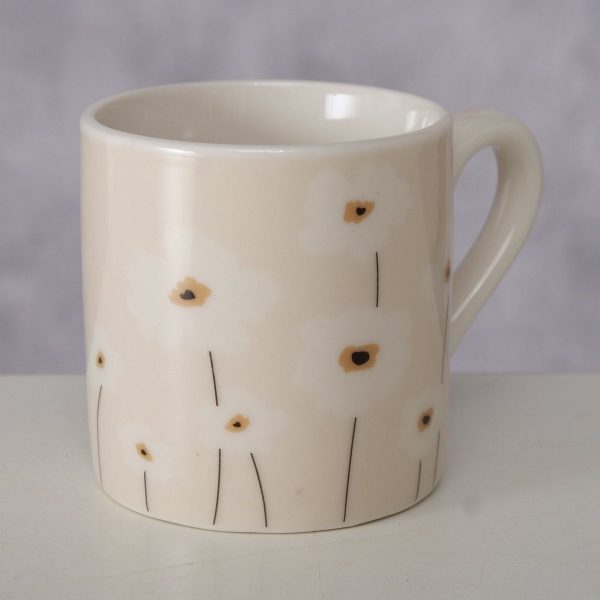 ΚΟΥΠΑ Farah ΜΠΕΖ ΛΕΥΚΟ Floral 400ml H9cm D9,5cm Dishwasher proof New Bone
