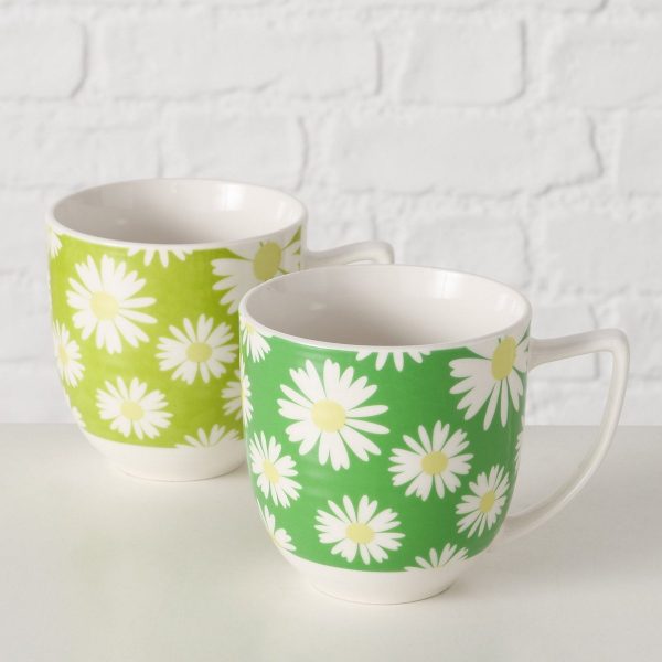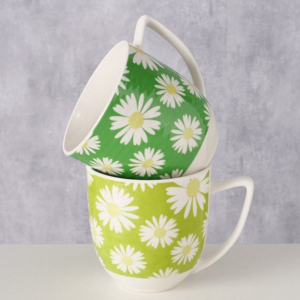 ΚΟΥΠΑ 2/ass Jumbo ΣΧΕΔΙΟ ΜΑΡΓΑΡΙΤΕΣ Daisie ΠΡΑΣΙΝΟ ΛΕΥΚΟ 400ml Dishwasher proof Floral New Bone ΠΟΡΣΕΛΑΝΗ