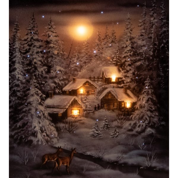 ΠΙΝΑΚΑΣ ΤΑΡΑΝΔΟΙ ΣΕ ΠΑΝΣΕΛΗΝΟ INDOOR CANVAS 38X48CM 5LED IN HOUSE LED BIG MOON + 42 FIBER SNOW – 2ΧAA B.O.
