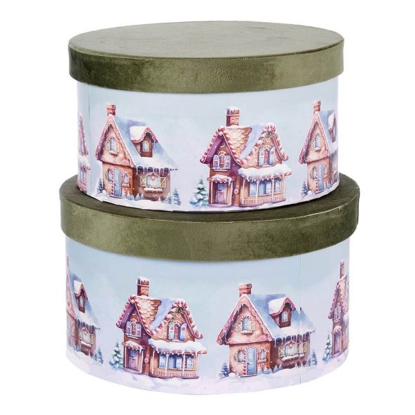 ΚΟΥΤΙ Set/2 ΣΤΡΟΓΓΥΛΟ ΠΡΑΣΙΝΟ ΒΕΛΟΥΔΟ ΓΑΛΑΖΙΟ ΜΕ ΜΕ ΣΠΙΤΙΑ D25-Η14,5cm, D27,5-H16cm