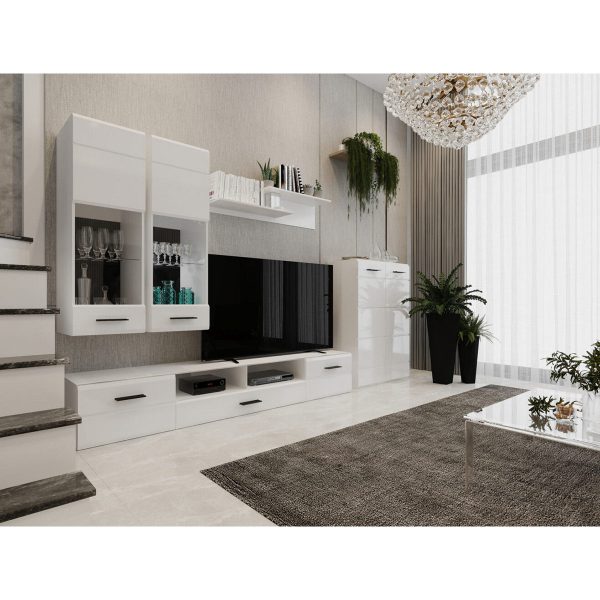 ΣΥΝΘΕΣΗ MONTE CARLO ΣΕΤ/4 ΛΕΥΚΟ ΓΥΑΛΙΣΤΕΡΟ ΜΕ ΦΩΤΙΣΜΟ (ΕΠΙΠΛΟ TV, ΡΑΦΙ, 2 ΒΙΤΡΙΝΕΣ ΕΠΙΤΟΙΧΙΕΣ, ΝΤΟΥΛΑΠΙ) ΜΕΛΑΜΙΝΗ (ΠΕΡΙΛΑΜΒΑΝΕΤΑΙ ΟΔΗΓΟΣ ΣΥΝΑΡΜΟΛΟΓΗΣΗΣ)