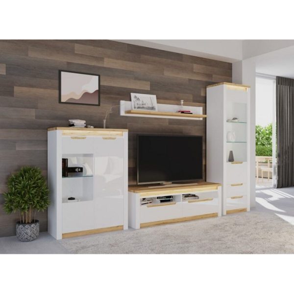 ΣΥΝΘΕΣΗ SORRENTO ΣΕΤ/4 ΟΑΚ TAHOE / ΛΕΥΚΟ ΓΥΑΛΙΣΤΕΡΟ (ΕΠΙΠΛΟ TV, ΡΑΦΙ, ΒΙΤΡΙΝΑ, ΝΤΟΥΛΑΠΙ) 302/207/45cm ΜΕΛΑΜΙΝΗ (ΠΕΡΙΛΑΜΒΑΝΕΤΑΙ ΟΔΗΓΟΣ ΣΥΝΑΡΜΟΛΟΓΗΣΗΣ)