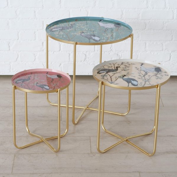 ΤΡΑΠΕΖΙ SET/3 ΒΟΗΘΗΤ ΣΑΛΟΝΙΟΥ ΣΧΕΔΙΟ ΕΡΩΔΙΟΣ ΜΕΤΑΛΛΙΚΟ ΡΟΖ/ΕΚΡΟΥ/ΠΡΑΣΙΝΟ Krano H37-51cm D32-52cm