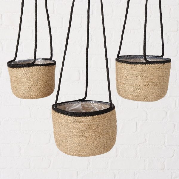 ΚΑΛΑΘΙ Set/3 ΚΡΕΜΑΣΤΟ Cunas ΦΥΣΙΚΟ ΜΕ ΜΑΥΡΗ ΡΙΓΑ Jute H14/16/18cm D17/20/23cm
