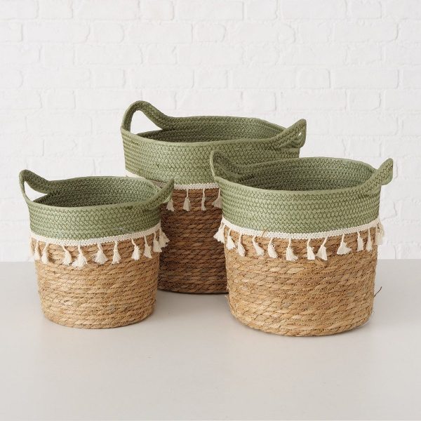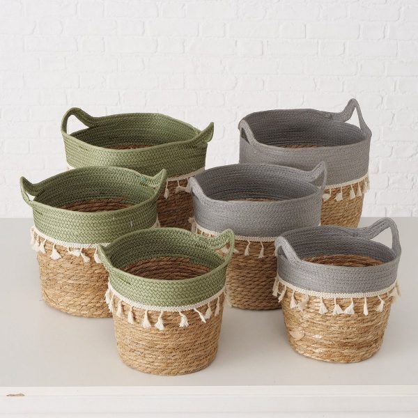 ΚΑΛΑΘΙ 2/ass Set/3 ΨΑΘΙΝΟ Polmaro ΦΥΣΙΚΟ seagrass ΓΚΡΙ ΠΡΑΣΙΝΟ ΦΟΥΝΤΕΣ H25/31/35cm D24/30/32cm