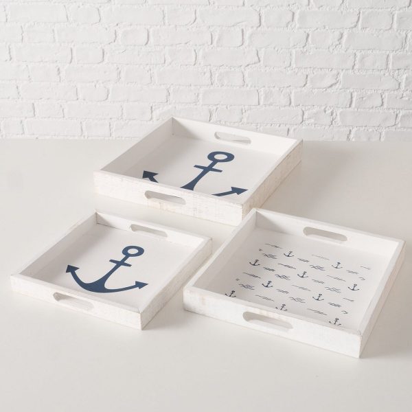 ΔΙΣΚΟΣ Hallig Set/3 ΣΧΕΔΙΟ ΑΓΚΥΡΑ ΜΑΥΡΗ ΞΥΛΟ ΛΕΥΚΟ 24Χ24Χ3cm, 28x28x4cm, 32x32x5cm