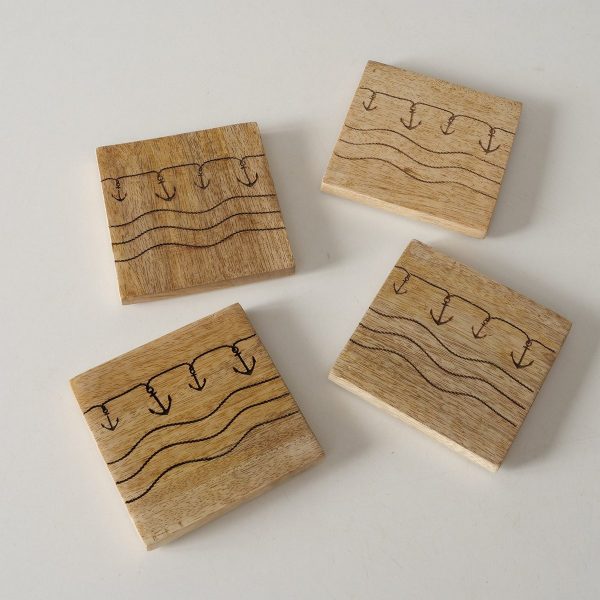 ΣΟΥΒΕΡ set/4 ΣΧΕΔΙΟ ΑΓΚΥΡΑ Busum 10X10cm ΞΥΛΟ ΦΥΣΙΚΟ Mango
