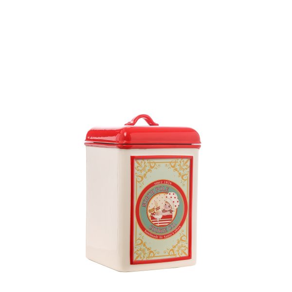ΔΟΧΕΙΟ ΑΠΟΘΗΚΕΥΣΗΣ CANDY ΚΟΚΚΙΝΟ/ΕΚΡΟΥ ΚΕΡΑΜΙΚΟ 13,5×13,5×22,3cm