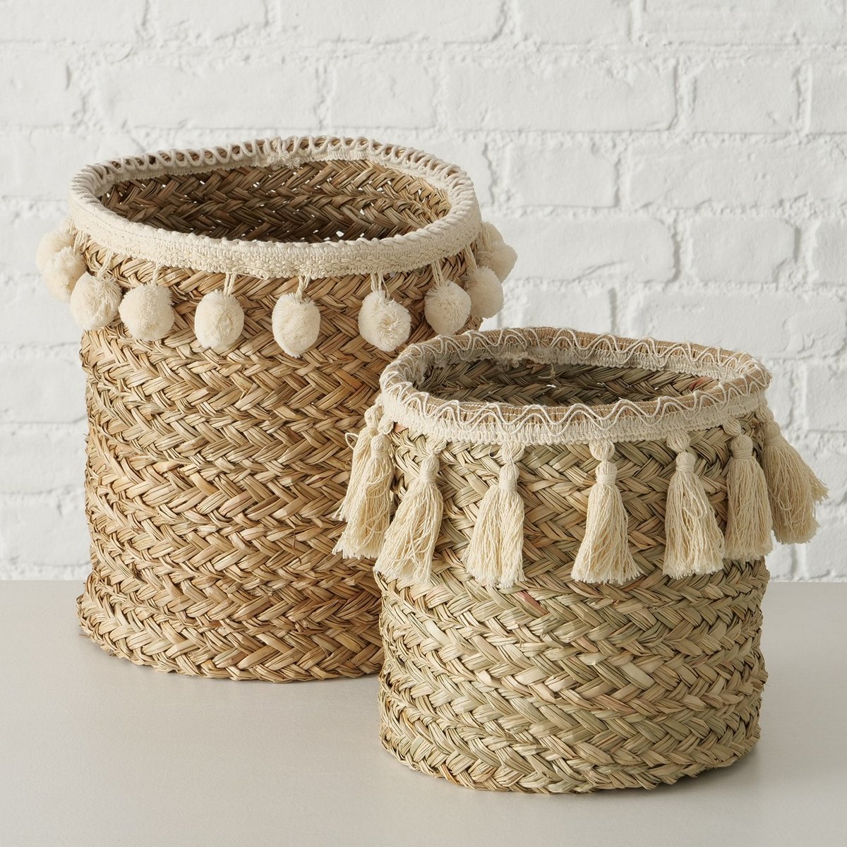 ΚΑΛΑΘΙ Set/2 ΦΥΣΙΚΟ ΨΑΘΙΝΟ ΜΕ ΦΟΥΝΤΕΣ ΕΚΡΟΥ Kaja H23-34cm D22-31cm