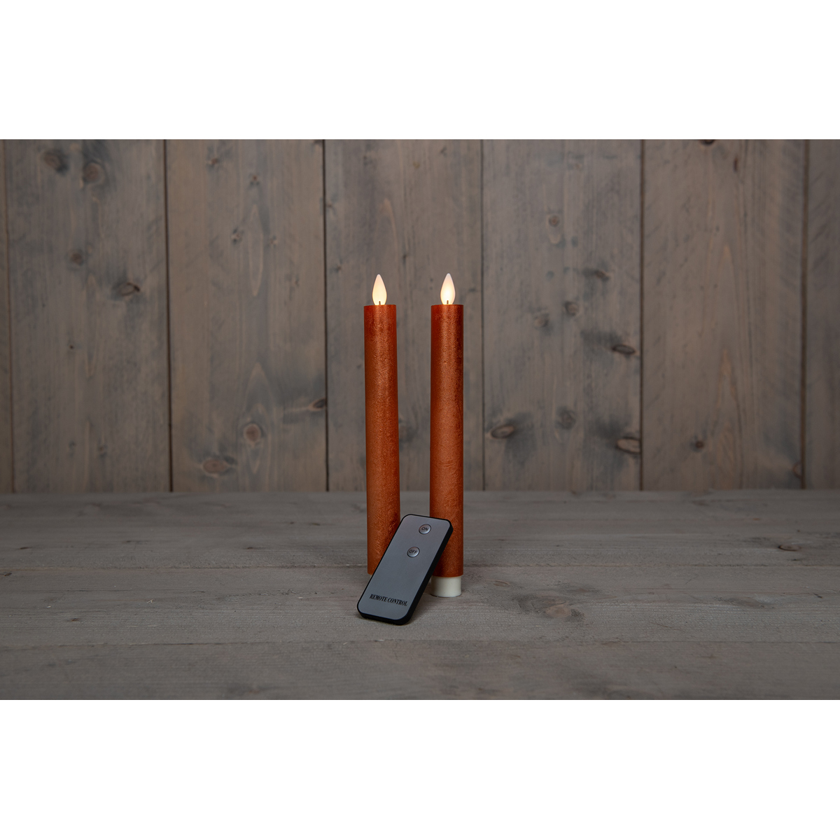 ΚΕΡΙ SET/2 ΧΑΛΚΙΝΟ RUSTIC ΜΕ ΚΙΝΟΥΜΕΝΗ ΦΛΟΓΑ ΜΠΑΤΑΡΙΑΣ TAPER CANDLE 23CM REMOTE CONTROLLED (ON/OFF) 2X2AA / COLOURBOX
