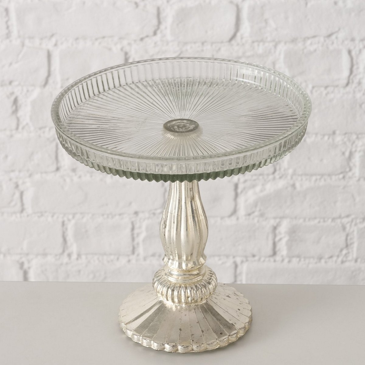 ΤΟΥΡΤΙΕΡΑ Eluise ΓΥΑΛΙ ΔΙΑΦΑΝΕΣ ΜΕ ΒΑΣΗ ΑΝΤΙΚΕ ΑΣΗΜΙ H19cm D20cm