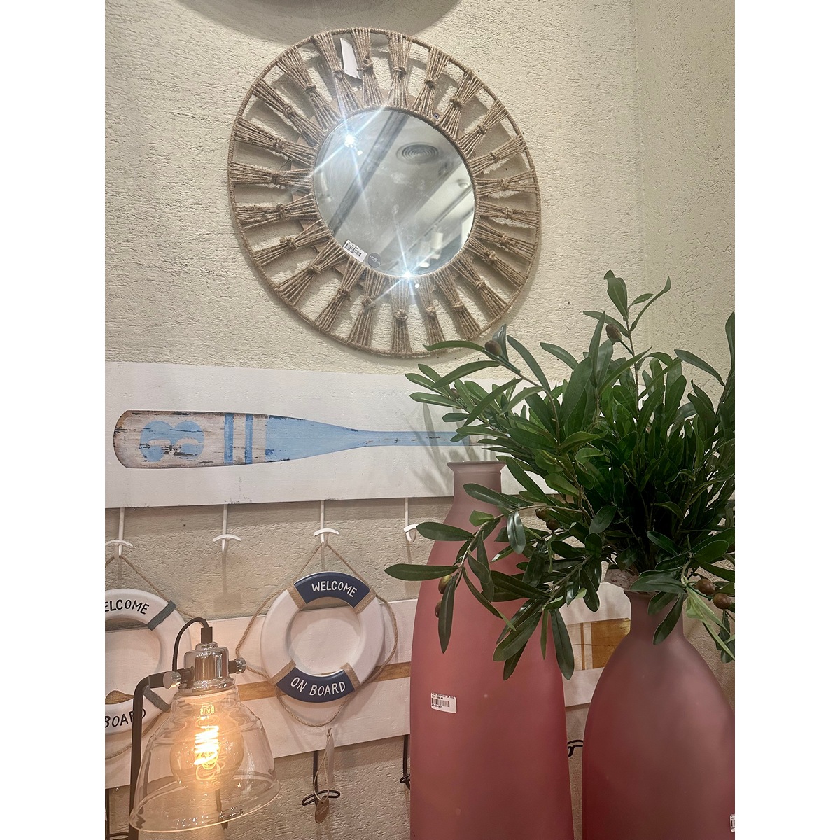 ΚΑΘΡΕΠΤΗΣ ΣΤΡΟΓΓΥΛΟΣ Merik D58 ΦΥΣΙΚΟ MDF Jute