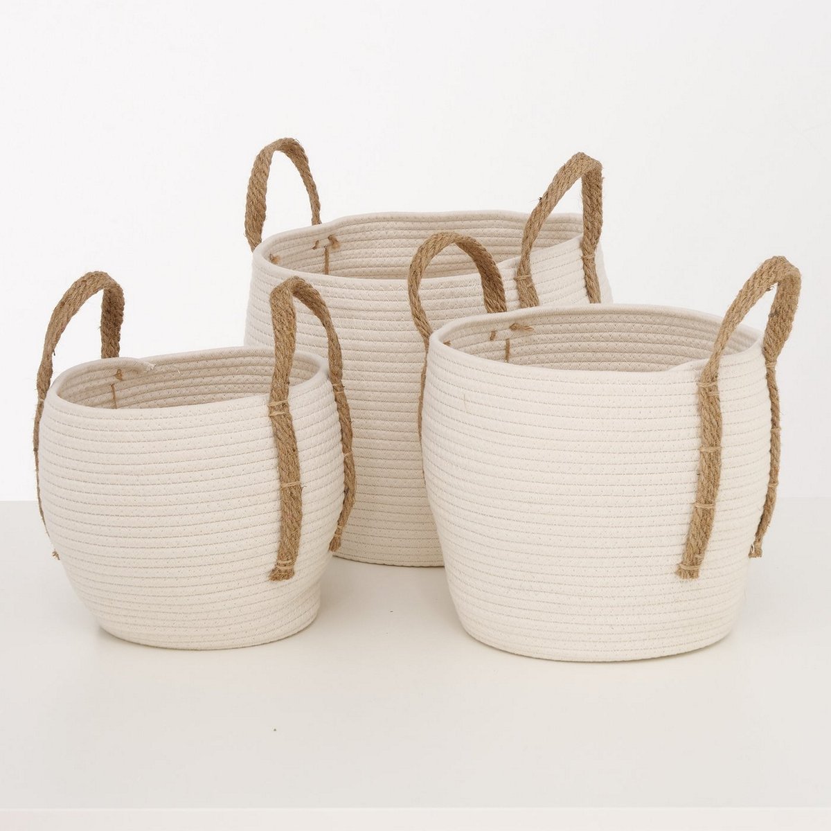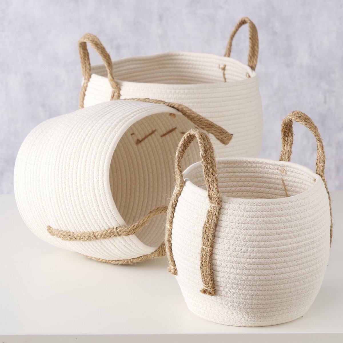 ΚΑΛΑΘΙ Set/3 ΠΛΕΚΤΟ ΚΡΕΜ Takeo H23-30cm D23-34cm Jute, Cotton