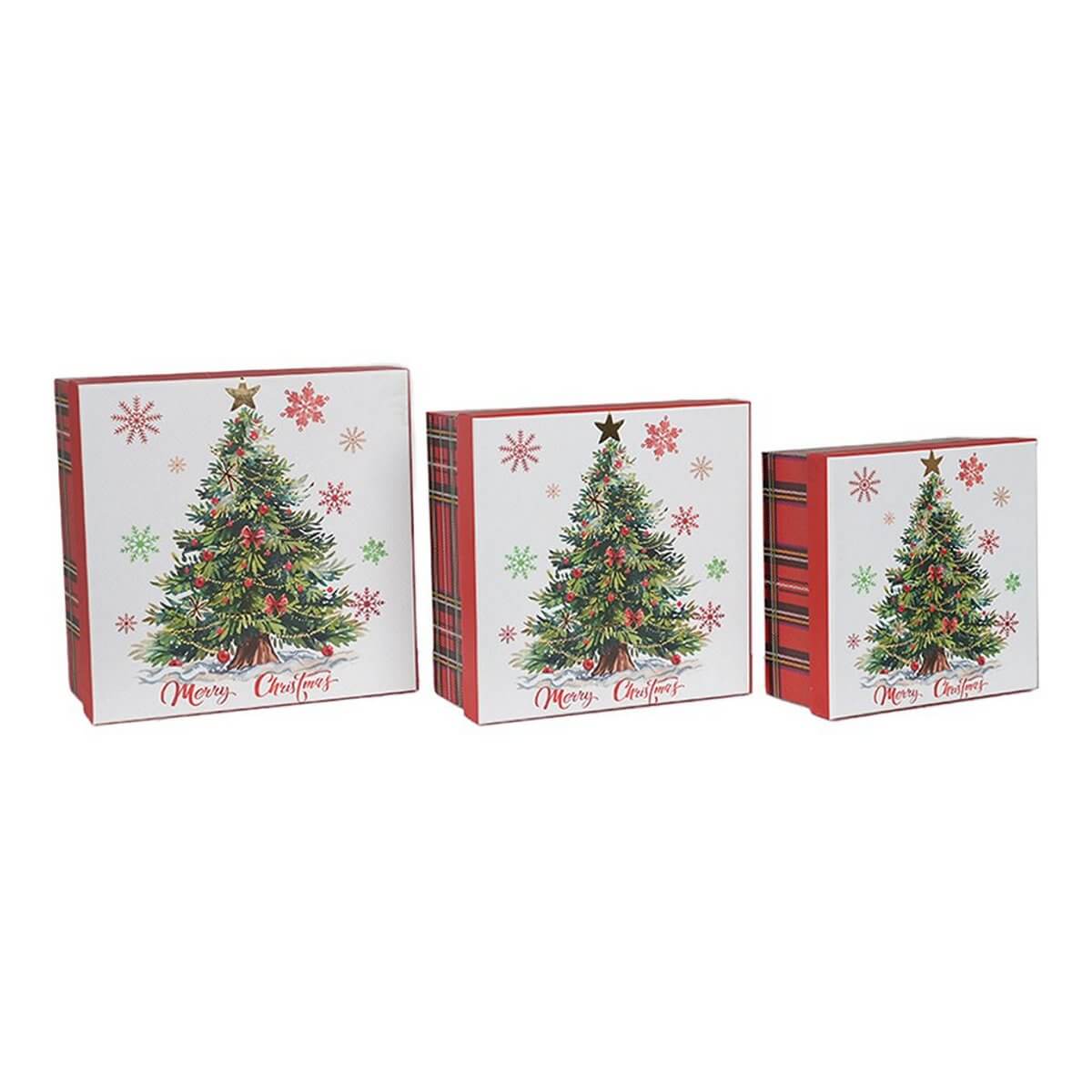 KΟΥΤΙ ΔΩΡΟΥ SET/3 ΧΡΙΣΤ.ΔΕΝΔΡΟ 15,5×15,5×7,5 CM WHITE/RED