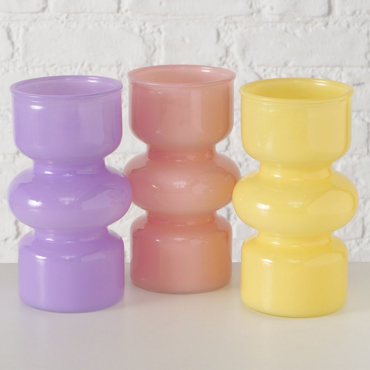 ΒΑΖΟ 3/ass Maika ΜΩΒ ΡΟΖ ΚΙΤΡΙΝΟ H18cm D10cm ΓΥΑΛΙ lacquered, Milky