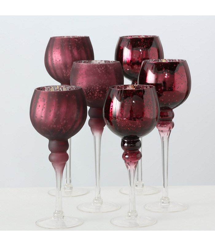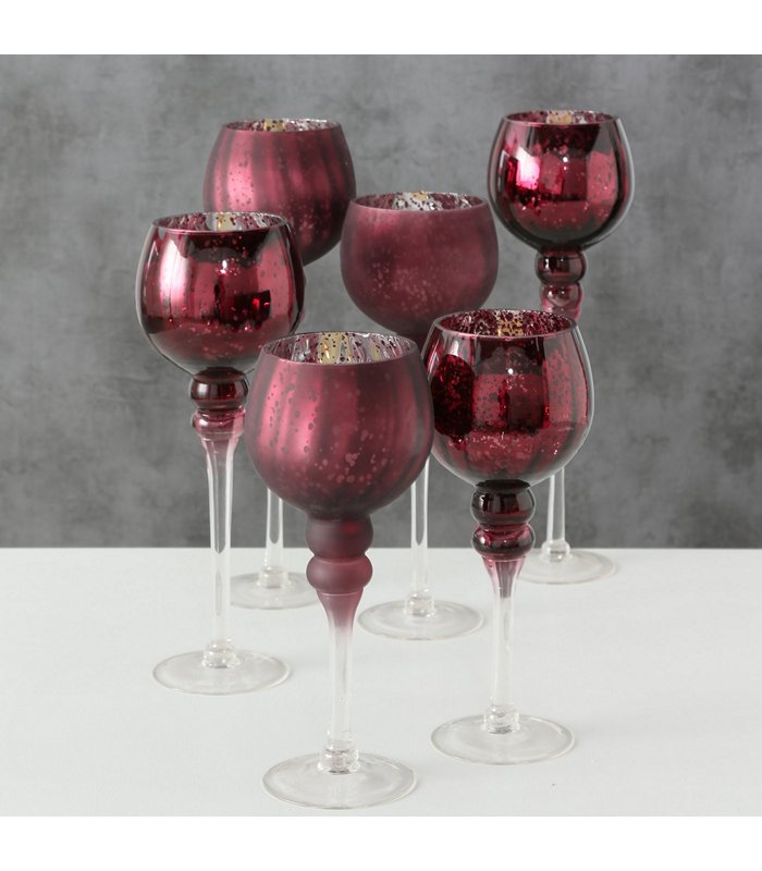 ΚΗΡΟΠΗΓΙΟ ΜΕ ΠΟΔΙ Set/3 ΚΟΚΚΙΝΟ 2/ASS ΓΥΑΛΙ Manou D13 H30/35/40 cm Glass laquered
