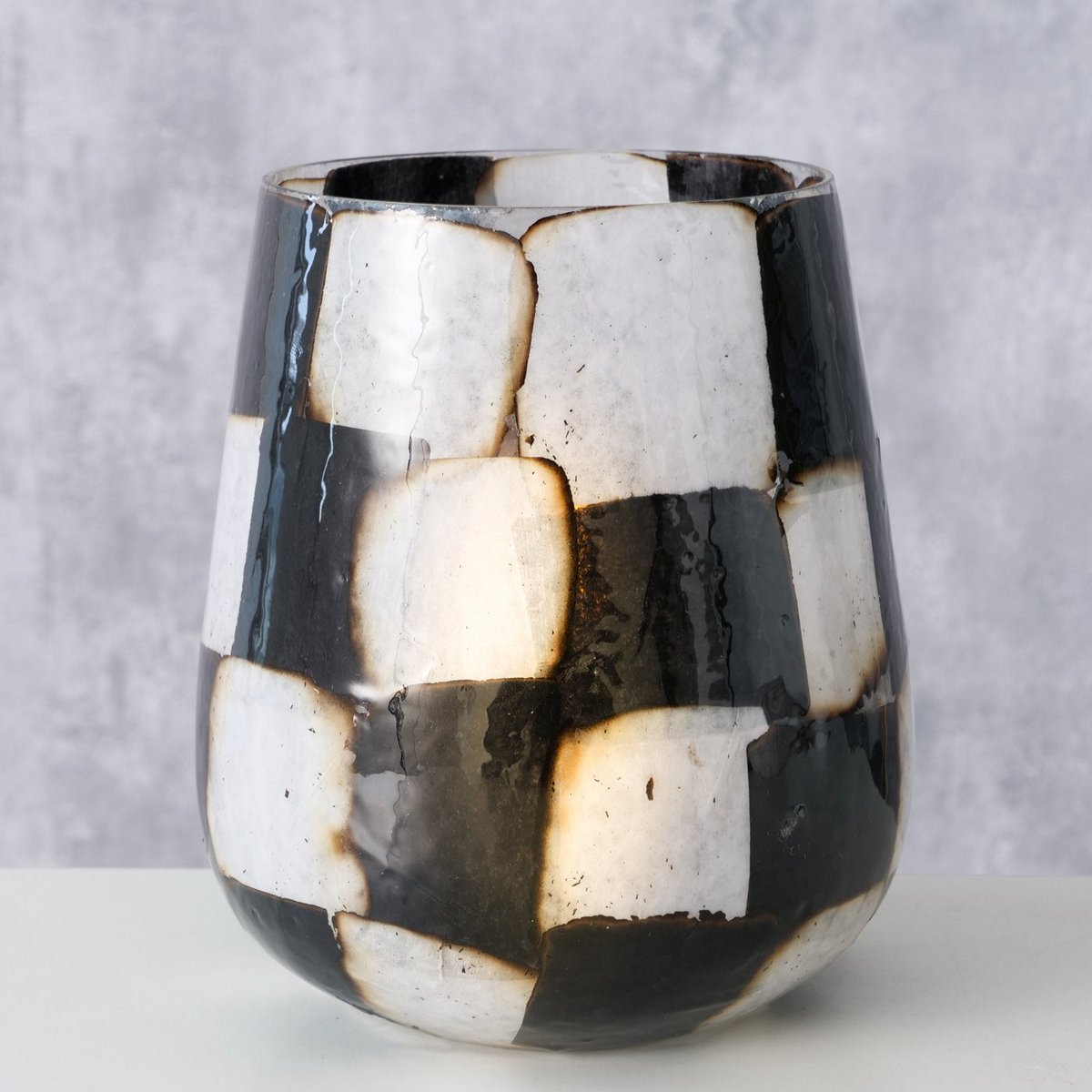ΚΗΡΟΠΗΓΙΟ Medo H14,5cm D13cm ΑΣΠΡΟΜΑΥΡΟ ΓΥΑΛΙ