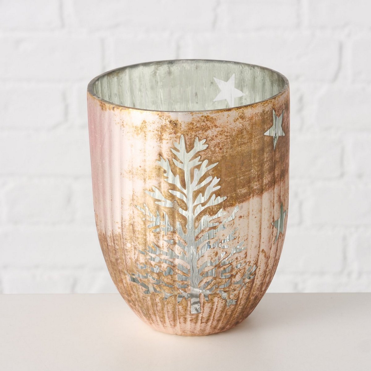 ΚΗΡΟΠΗΓΙΟ Set/2 ΣΧΕΔΙΟ ΦΥΛΛΟ ΑΣΤΕΡΙΑ ΑΣΗΜΙ ΡΟΖ Grenolia D12-14 H15-21cm ΓΥΑΛΙ