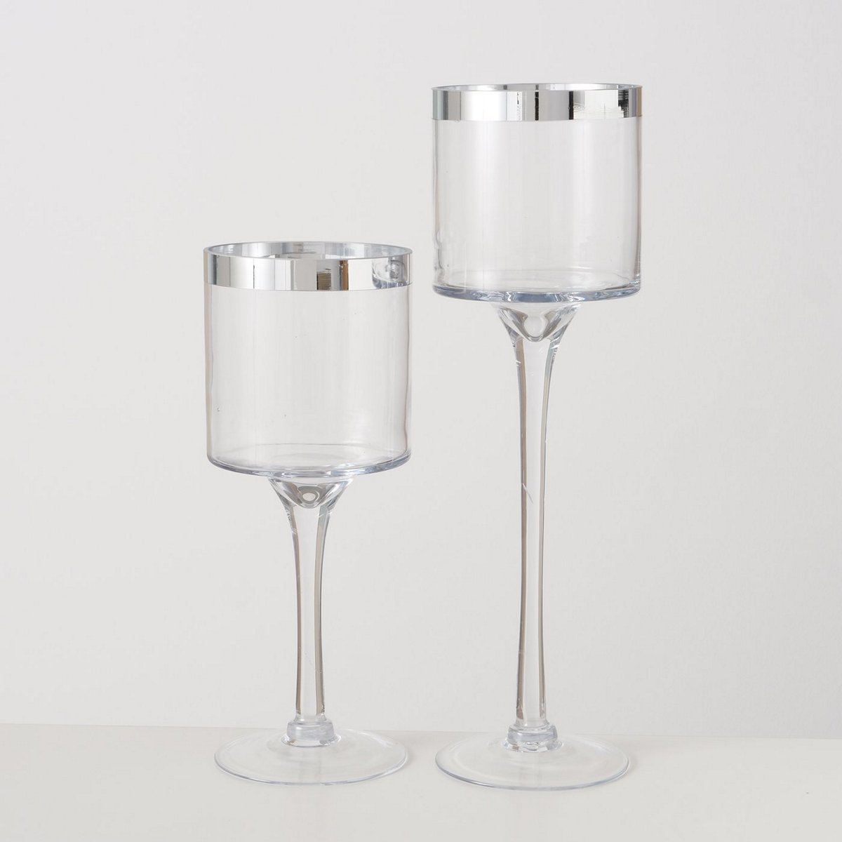 ΚΗΡΟΠΗΓΙΟ Set/2 Arosa ΓΥΑΛΙ ΔΙΑΦΑΝΕΣ ΡΙΓΑ ΑΣΗΜΙ H30/40cm D12cm