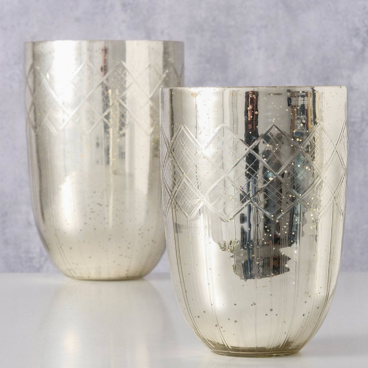 ΚΗΡΟΠΗΓΙΟ Set/2 Grieta D15-18 H21-27 cm ΓΥΑΛΙ lacquered ΑΣΗΜΙ/ΧΡΥΣΟ