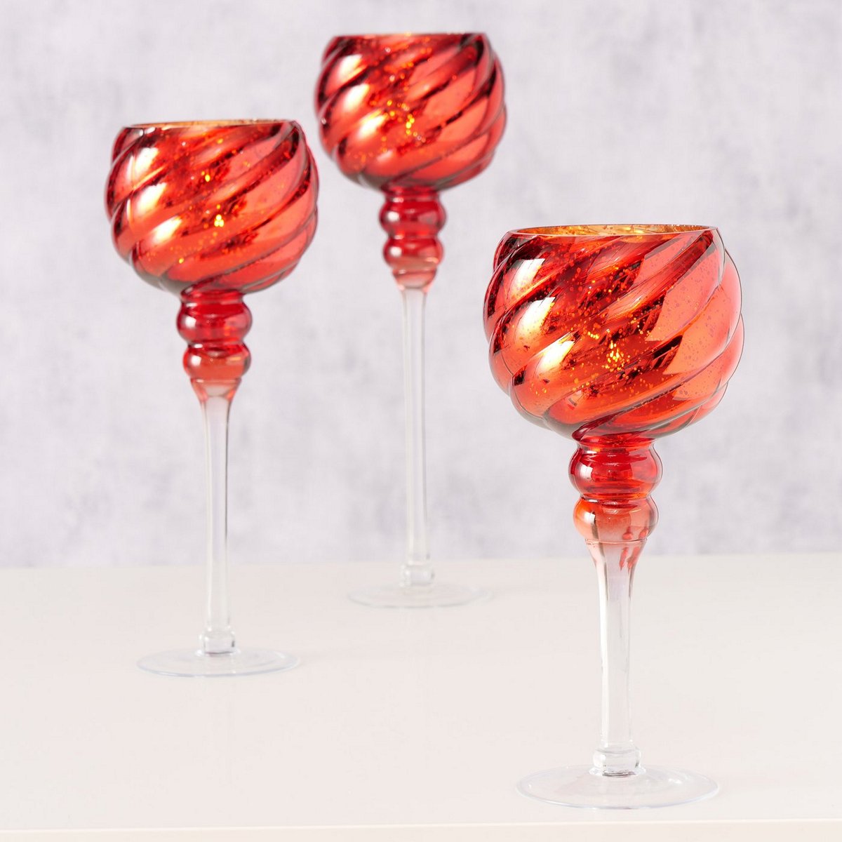 ΚΗΡΟΠΗΓΙΟ Set/3 ΚΟΚΚΙΝΟ ΜΕ ΠΟΔΙ Manou D13cm H30/35/40cm ΓΥΑΛΙ