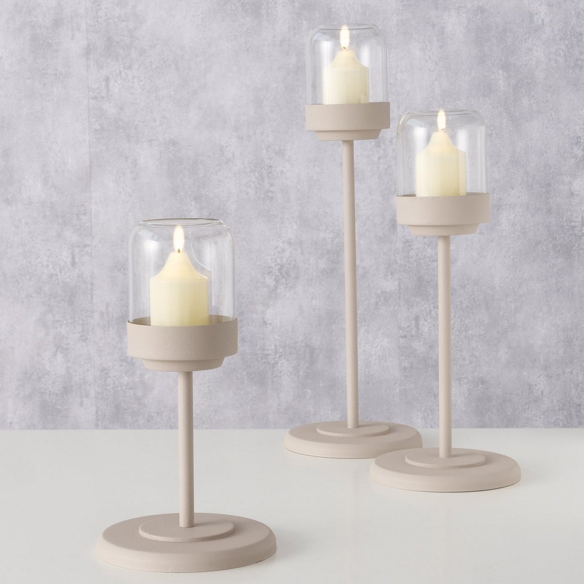 ΚΗΡΟΠΗΓΙΟ Set/3 Senza H28/37/46cm D15cm ΓΥΑΛΙ ΔΙΑΦΑΝΕΣ ΜΕΤΑΛΛΟ ΜΠΕΖ