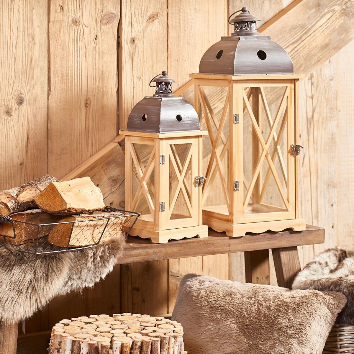 ΦΑΝΑΡΙ Bristol Set/3 Indoor, ΦΥΣΙΚΟ ΞΥΛΟ, ΜΑΥΡΟ ΜΕΤΑΛΛΟ 16Χ16Χ42cm, 22Χ22Χ59cm, 31Χ31Χ82cm