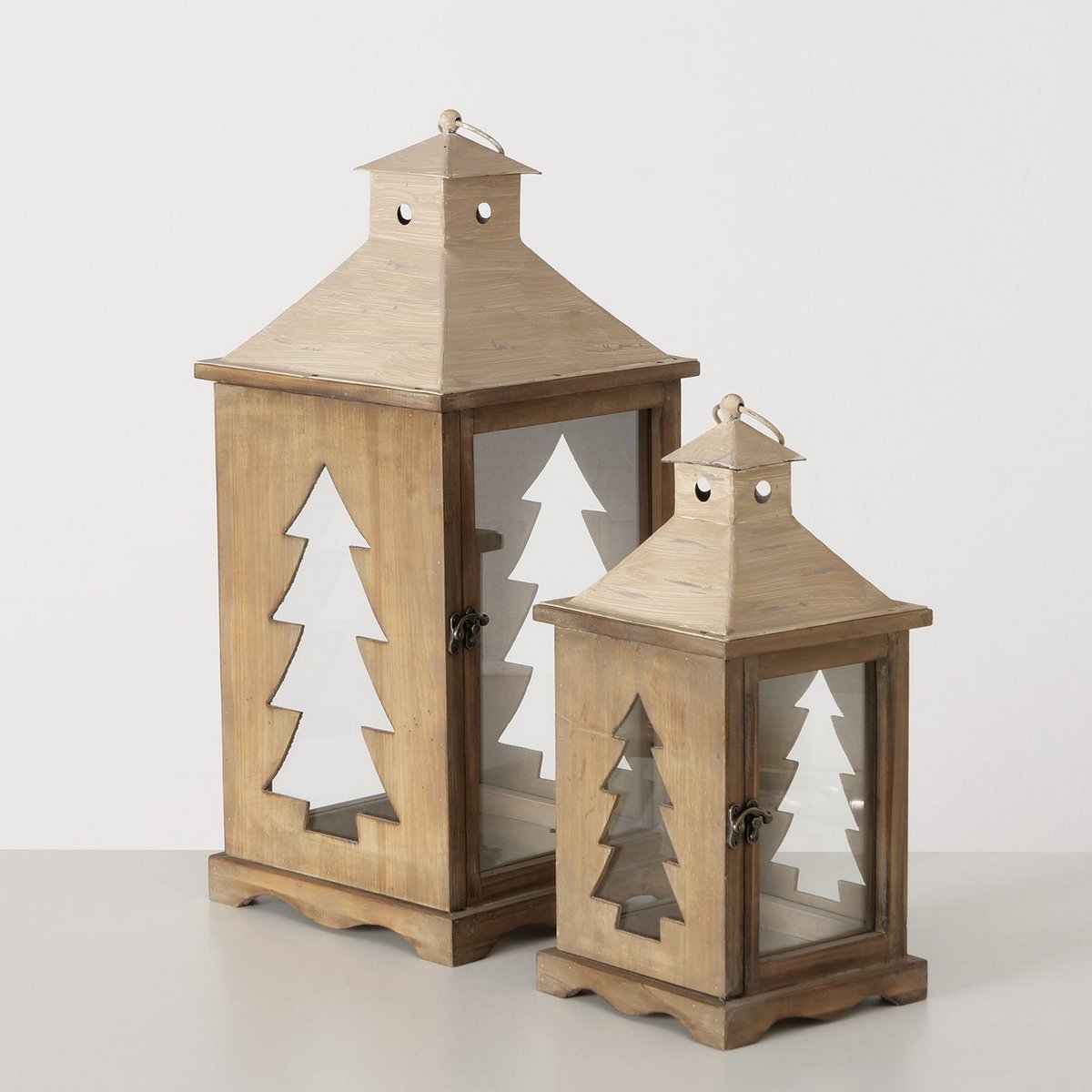 ΦΑΝΑΡΙ Set/2 Lungau ΞΥΛΟ ΦΥΣΙΚΟ ΜΕΤΑΛΛΟ ΕΚΡΟΥ 18x18x39cm 24x24x54cm