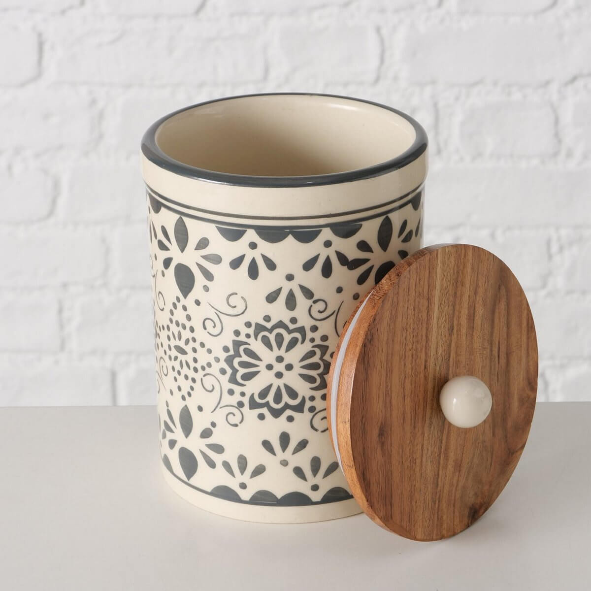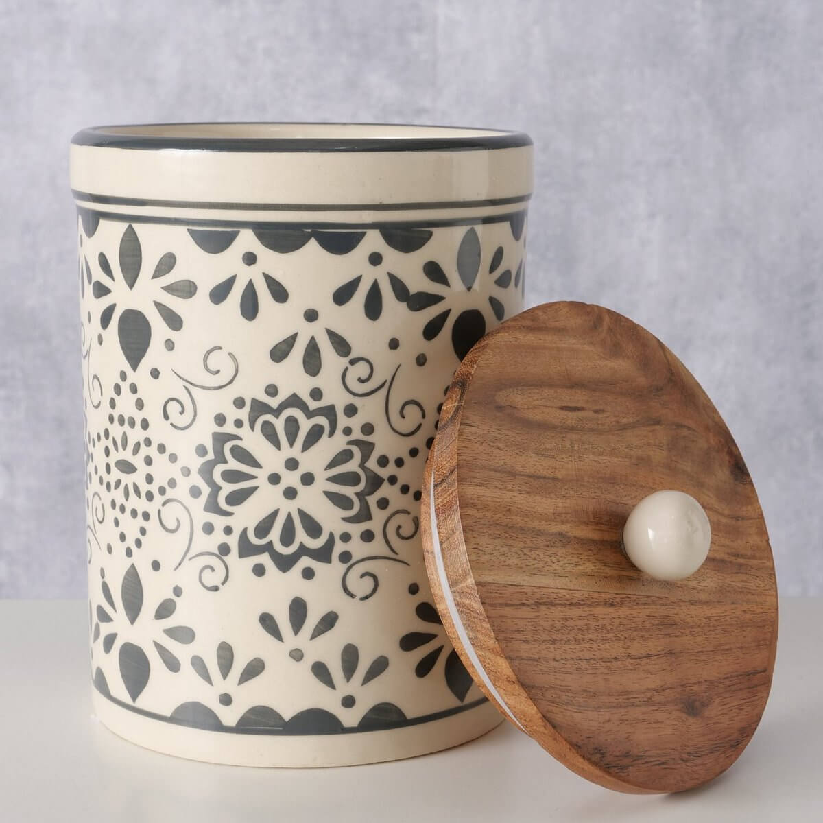 ΔΟΧΕΙΟ ΑΠΟΘΗΚΕΥΣΗΣ Kina ΚΕΡΑΜΙΚΟ ΕΚΡΟΥ ΓΚΡΙ H18,5cm D12,5cm ΚΑΠΑΚΙ ΞΥΛΟ ΑΚΑΚΙΑΣ ΜΕ ΣΙΛΙΚΟΝΗ