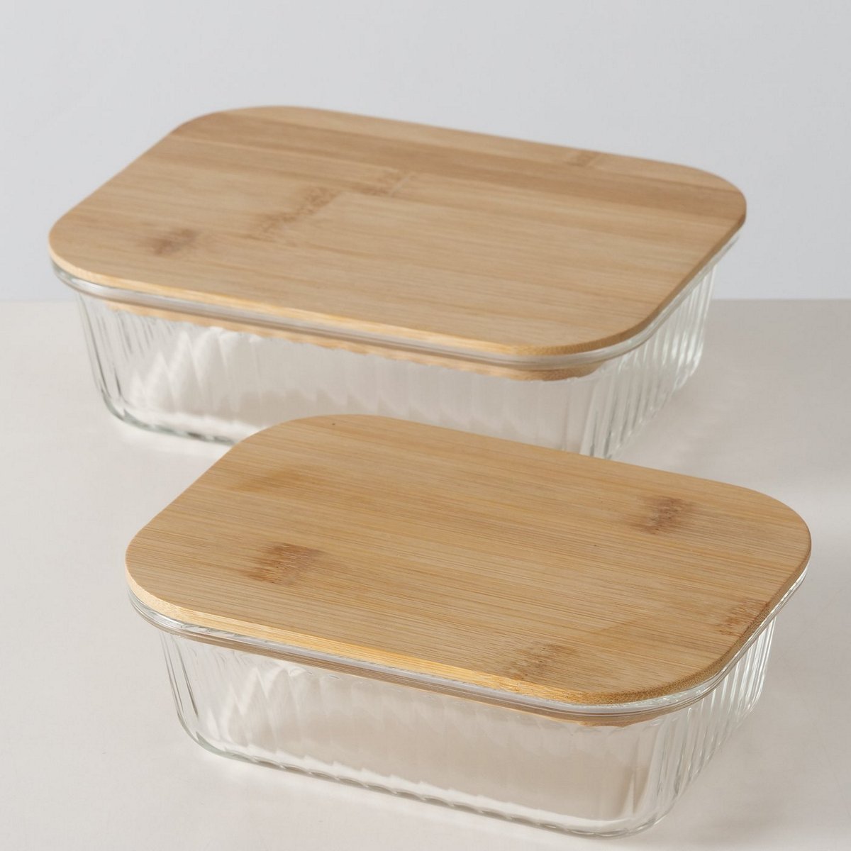 ΔΟΧΕΙΟ ΑΠΟΘΗΚΕΥΣΗΣ Set/2 Luka ΓΥΑΛΙ ΔΙΑΦΑΝΕΣ ΜΕ ΚΑΠΑΚΙ ΞΥΛΟ BAMBOO Dishwasher proof 17,3Χ12,7Χ5,8cm 20x15x6,2cm