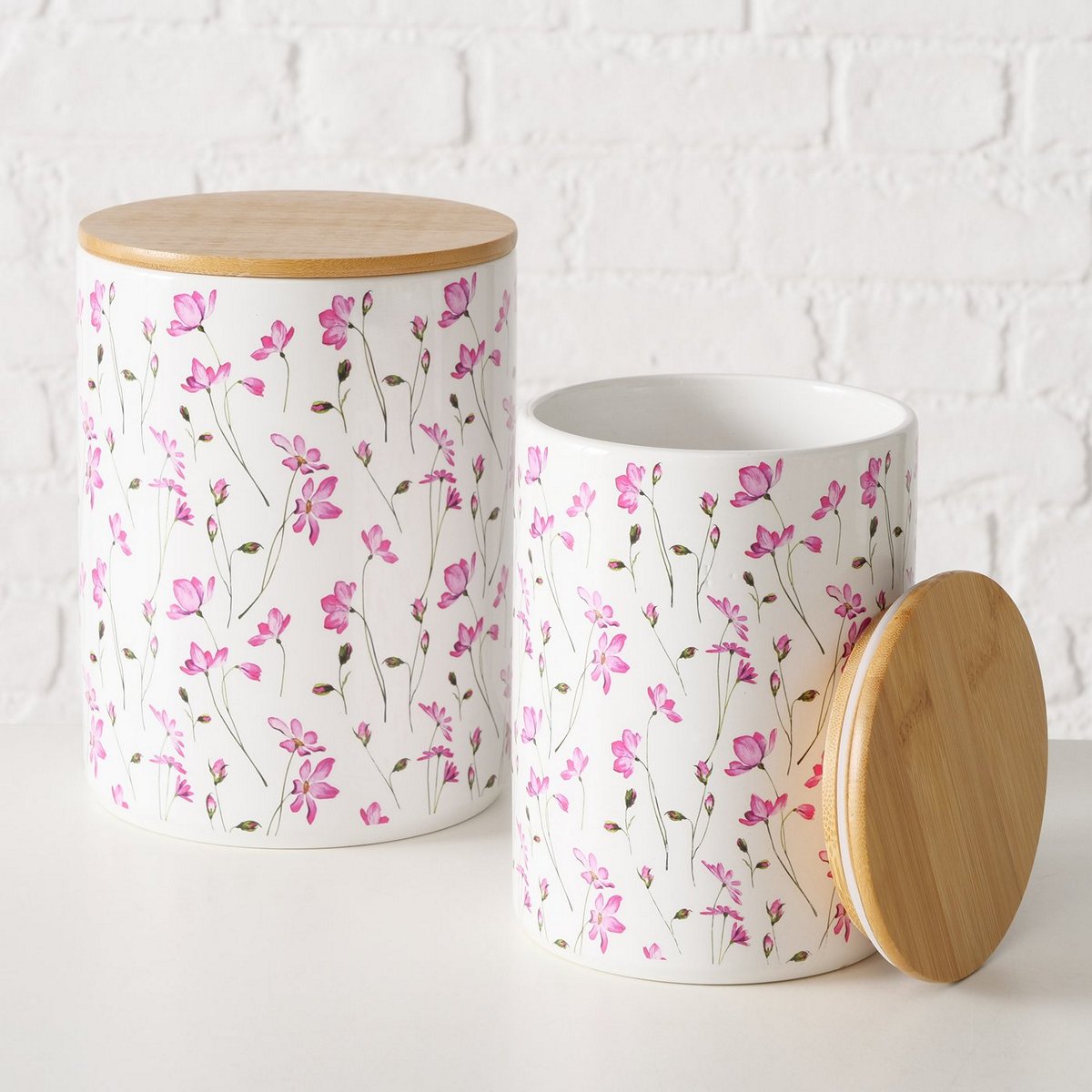 ΔΟΧΕΙΟ 2/ass Set/2 ΑΠΟΘΗΚΕΥΣΗΣ ΜΕ ΛΟΥΛΟΥΔΙΑ Lilliana H16-19cm D12-14cm ΚΕΡΑΜΙΚΟ ΜΕ ΚΑΠΑΚΙ Bamboo