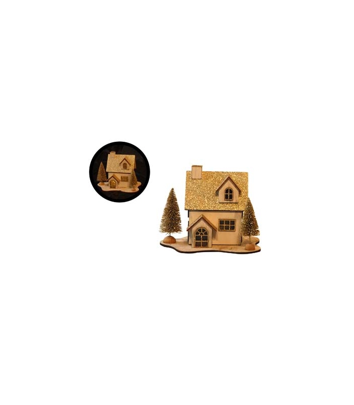 ΣΠΙΤΙ ΞΥΛΙΝΟ ΜΕ STRASS ΣΕ ΑΚΑΝΟΝΙΣΤΗ ΒΑΣΗ ΚΑΙ LED ΦΥΣΙΚΟ/ΛΕΥΚΟ 19.5×15.5x15cm