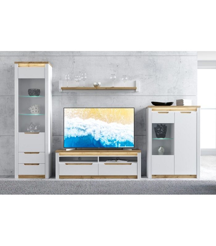 ΣΥΝΘΕΣΗ NICE ΣΕΤ/4 SONOMA OAK / ΛΕΥΚΟ ΜΕ ΦΩΤΙΣΜΟ (ΕΠΙΠΛΟ TV, 2 ΡΑΦΙΑ,  ΕΠΙΤΟΙΧΙΟ ΝΤΟΥΛΑΠΙ, ΝΤΟΥΛΑΠΙ) 290/190/48cm ΜΕΛΑΜΙΝΗ (ΠΕΡΙΛΑΜΒΑΝΕΤΑΙ ΟΔΗΓΟΣ ΣΥΝΑΡΜΟΛΟΓΗΣΗΣ)