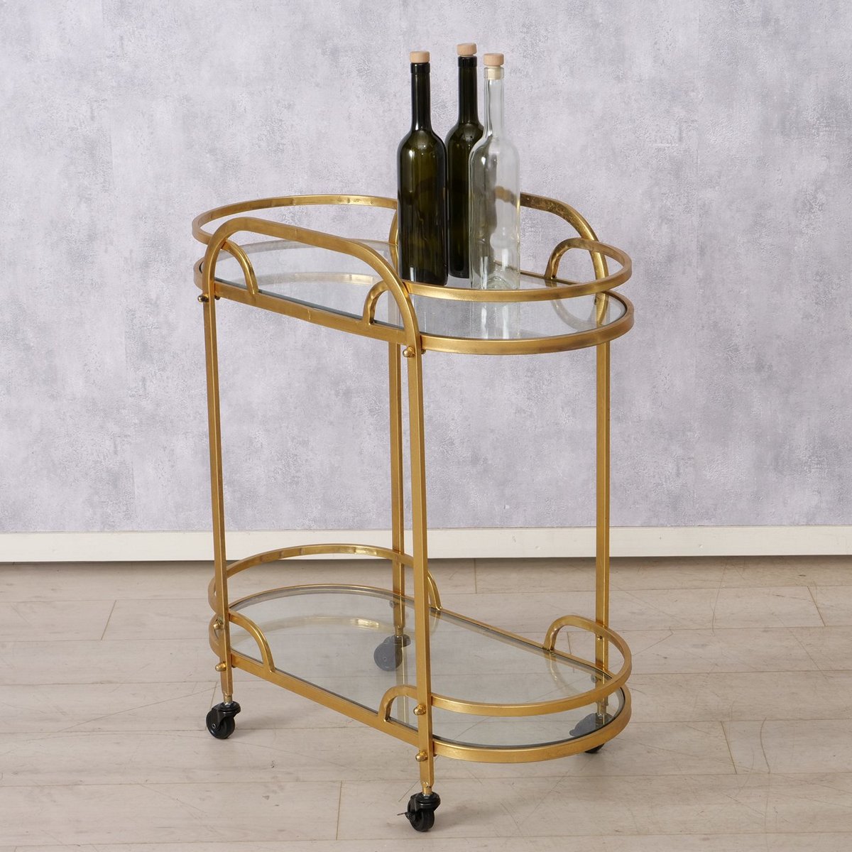 ΜΠΑΡ ΤΡΟΧΗΛΑΤΟ ΜΕΤΑΛΛΙΚΟ ΑΝΤΙΚΕ ΧΡΥΣΟ ΜΕ ΚΑΘΡΕΠΤΗ Giovanni 41Χ79,5Χ87cm