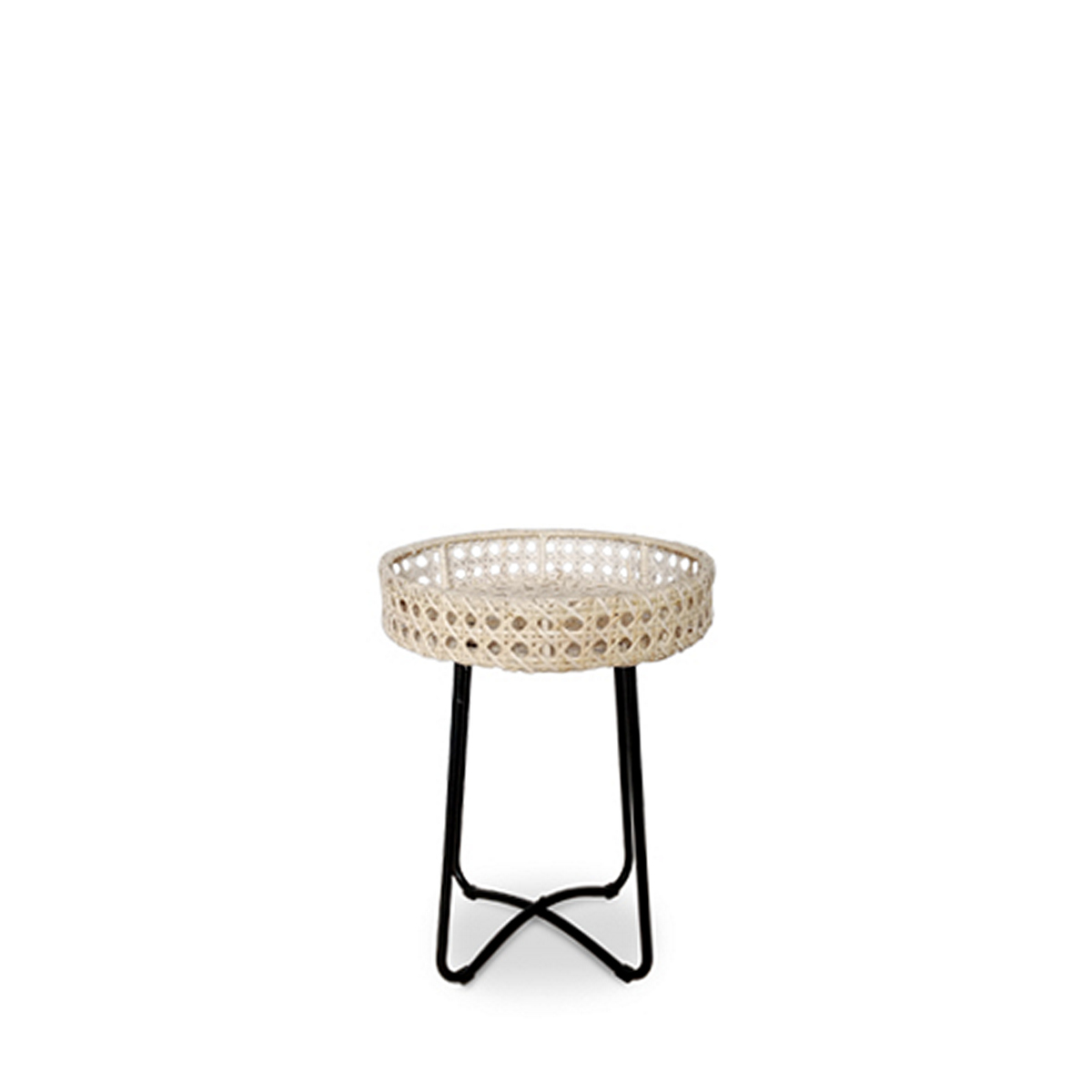 ΤΡΑΠΕΖΙ ΒΟΗΘΗΤΙΚΟ Ella ΡΑΤΤΑΝ ΦΥΣΙΚΟ ΠΛΕΞΗ webbing ΜΕΤΑΛΛΙΚΟ ΠΟΔΙ ΜΑΥΡΟ D40 H55cm