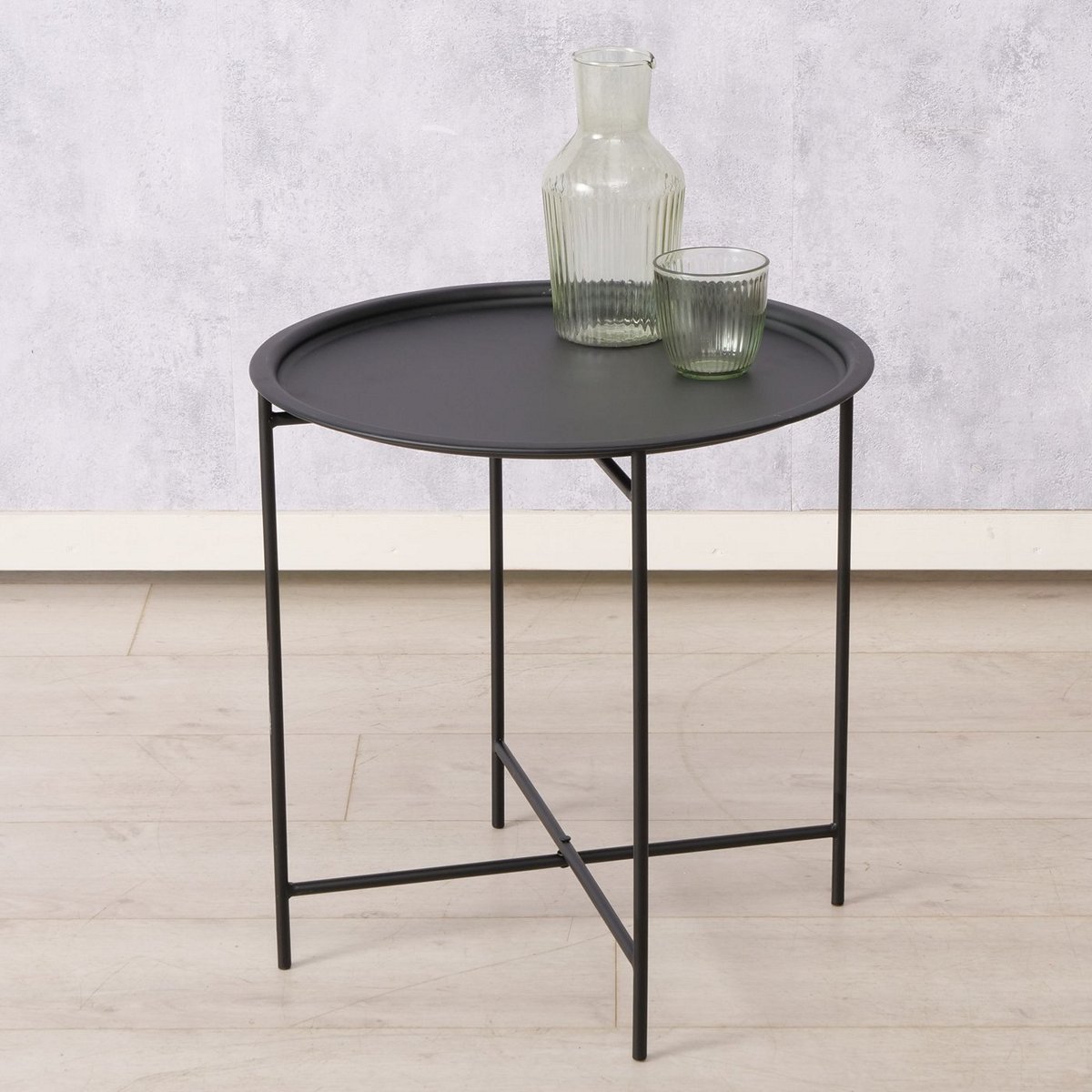ΤΡΑΠΕΖΙ ΜΕ ΔΙΣΚΟ ΑΠΟΣΠΩΜΕΝΟ Rocko H47cm D46cm ΜΑΥΡΟ ΜΕΤΑΛΛΙΚΟ