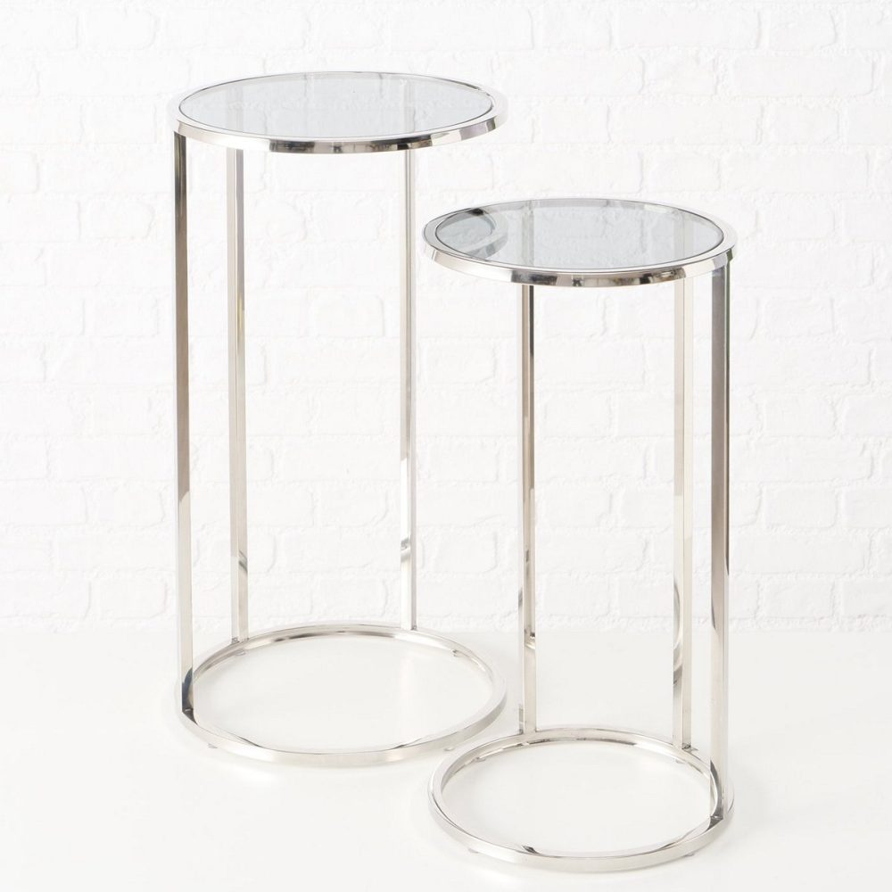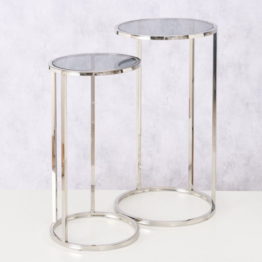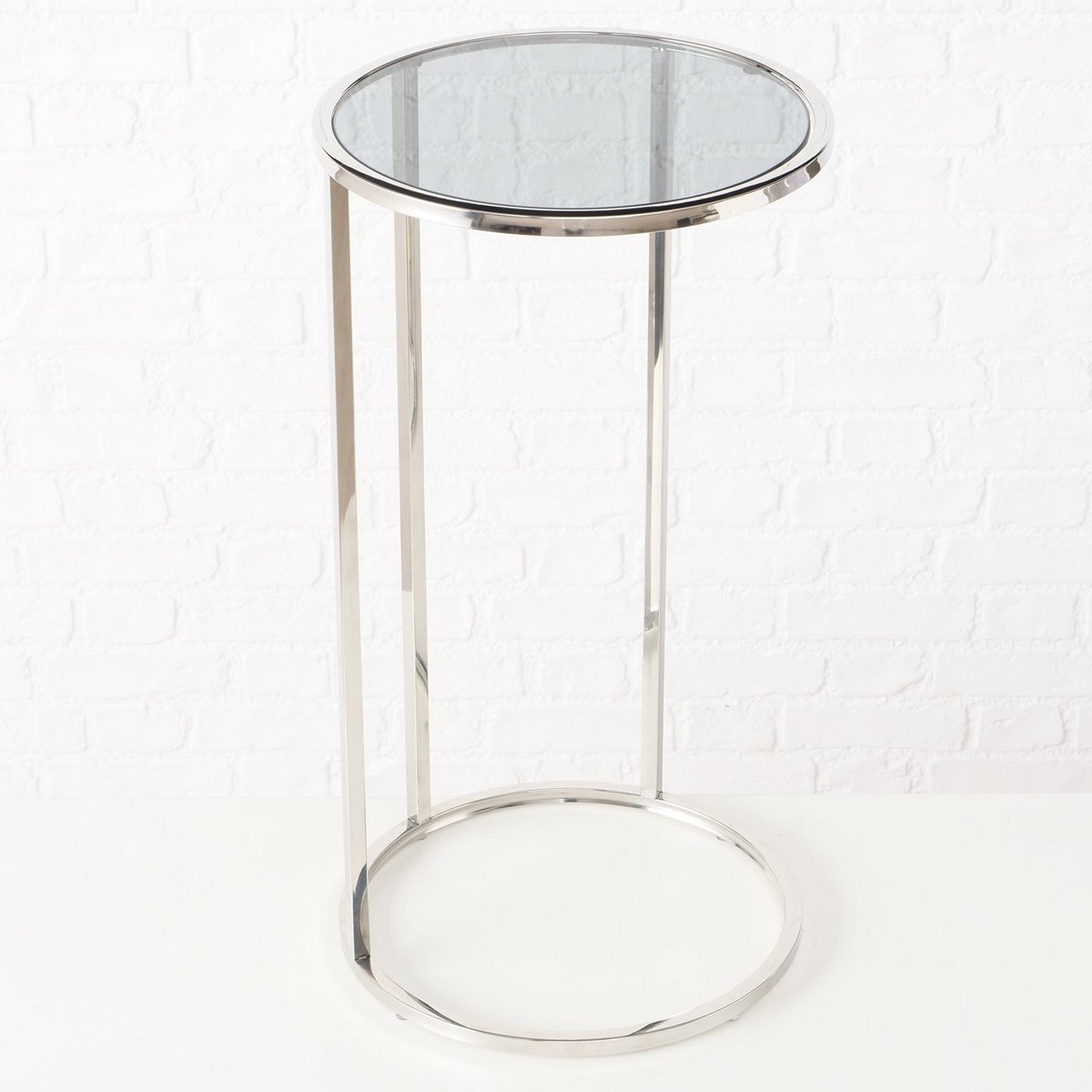 ΤΡΑΠΕΖΙ Set/2 ΒΟΗΘΗΤΙΚΟ Salsa H62,5-70,5 cm D32,5-38cm ANOΞΕΙΔΩΤΟ ΑΤΣΑΛΙ ΑΣΗΜΙ ΜΕ ΓΚΡΙ ΓΥΑΛΙ