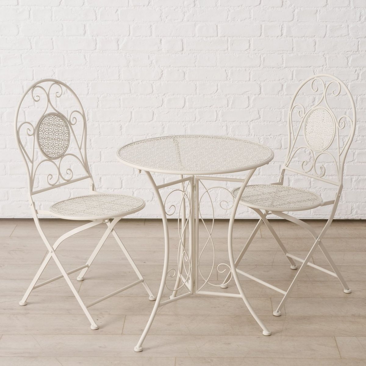 ΣΕΤ ΚΗΠΟΥ Marisa Set/3 ΛΕΥΚΟ, ΚΑΡΕΚΛΕΣx2 43x44x94cm, ΤΡΑΠΕΖΙ H72cm D60cm ΜΕΤΑΛΛΟ