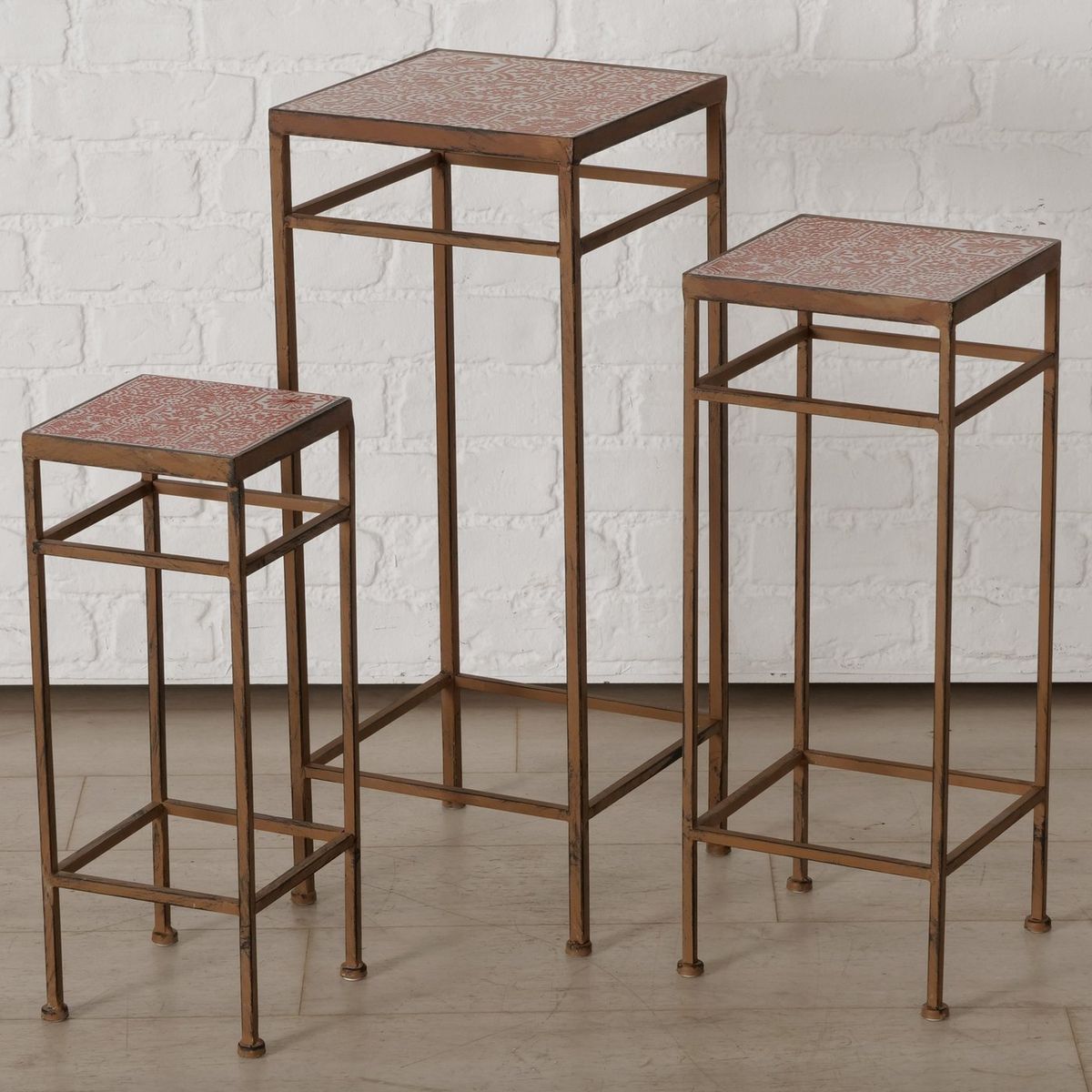 ΤΡΑΠΕΖΙ/ΣΤΗΛΗ Set/3 ΒΟΗΘΗΤΙΚΟ Rosso, ΚΑΦΕ 19Χ19Χ49cm, 23Χ23Χ59cm, 28Χ28Χ69cm Iron powder coated