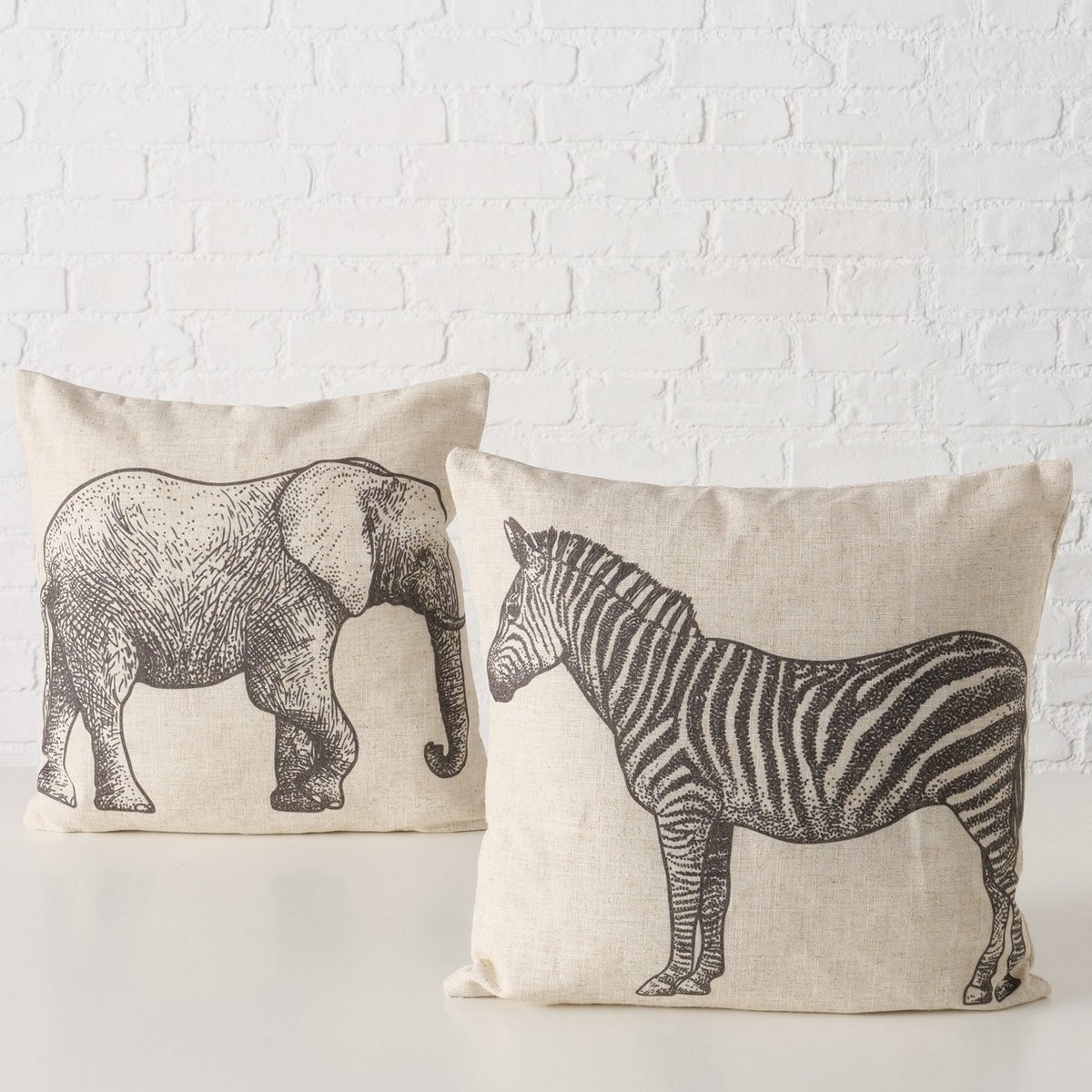 ΜΑΞΙΛΑΡΙ 2/ass Safari Elephant/Zebra ΚΑΦΕ ΜΑΥΡΟ 45Χ45Χ13cm Jute Cotton