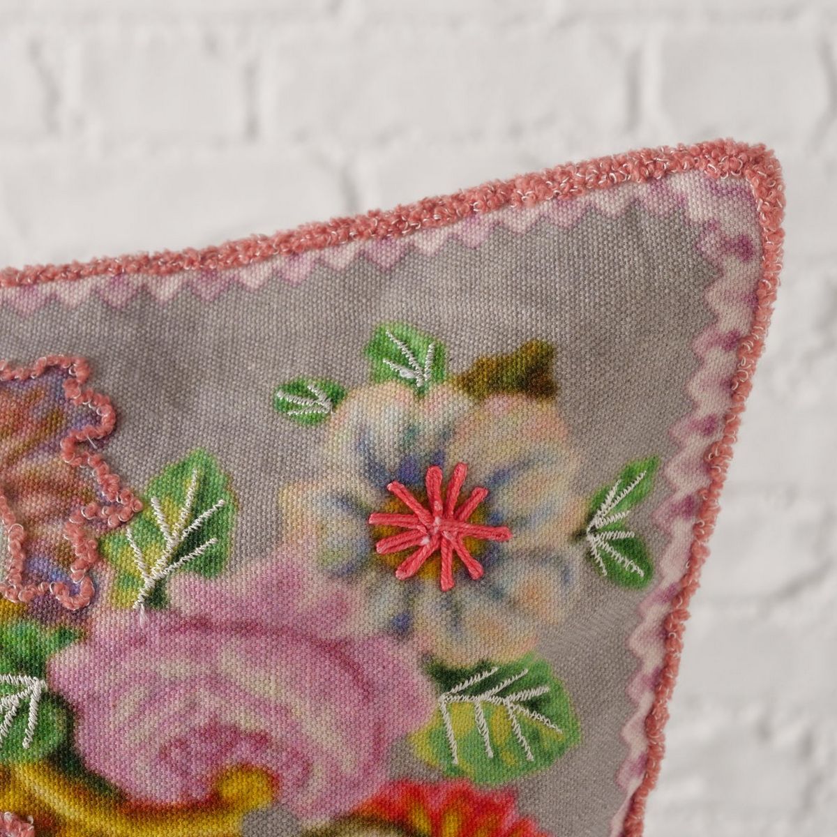 ΜΑΞΙΛΑΡΙ Floral, 60Χ40Χ12cm ΠΡΑΣΙΝΟ ΡΟΖ ΠΟΡΤΟΚΑΛΙ Cotton