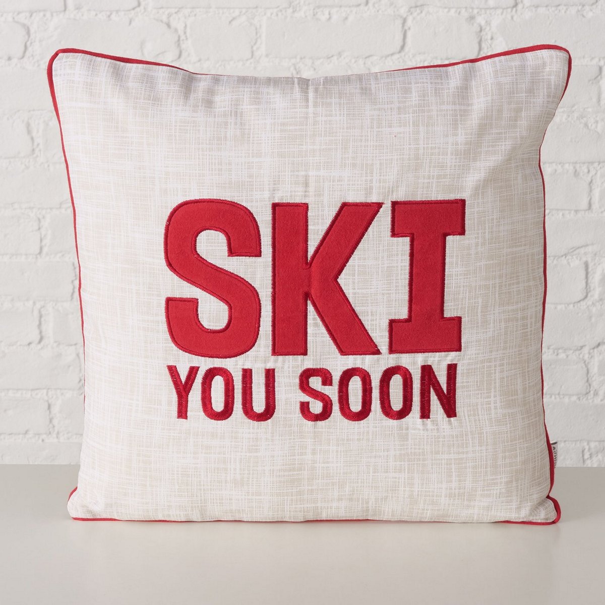 ΜΑΞΙΛΑΡΙ Ski ΕΚΡΟΥ ΚΟΚΚΙΝΟ 45Χ45Χ8cm Cotton