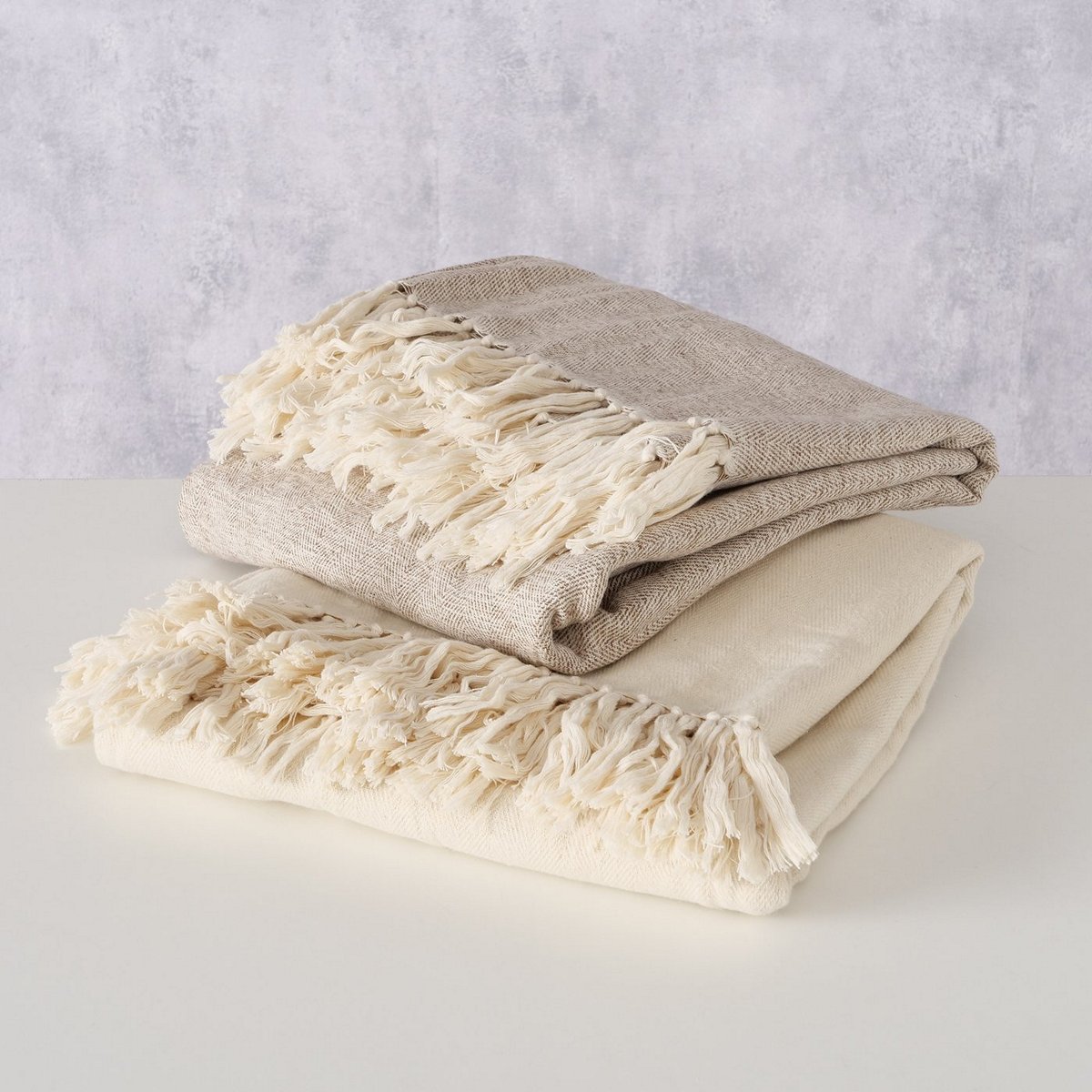 ΚΟΥΒΕΡΤΑ/ΡΙΧΤΑΡΙ 2/ass Bonneh ΚΡΕΜ/ΓΚΡΙ 140X170cm Cotton 100%