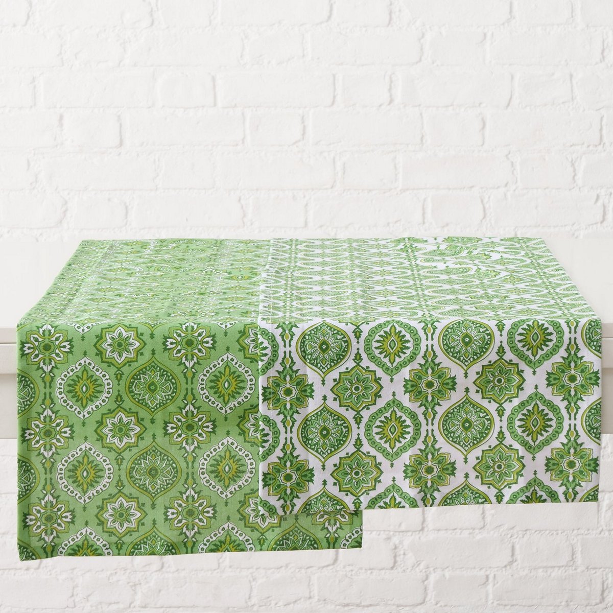 ΤΡΑΒΕΡΣΑ 2/ass Portofino ΠΡΑΣΙΝΟ ΛΕΥΚΟ 142X41cm cotton