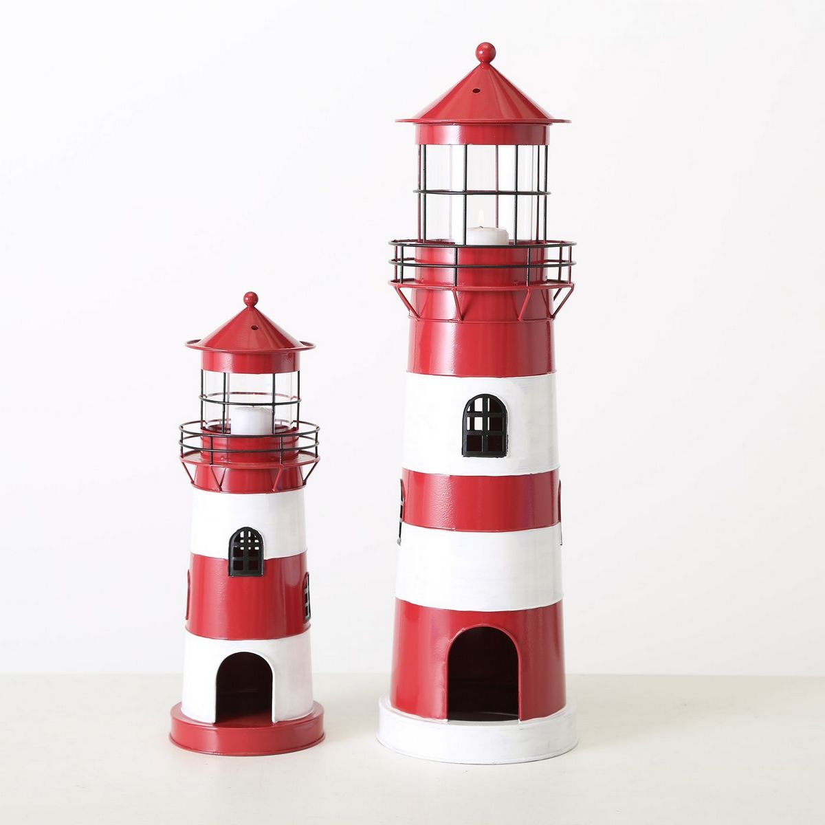 ΦΑΡΟΣ Set/2 Leuchtturm ΚΟΚΚΙΝΟ ΛΕΥΚΟ H42/64cm, D15/19cm ΜΕΤΑΛΛΟ ΓΥΑΛΙ