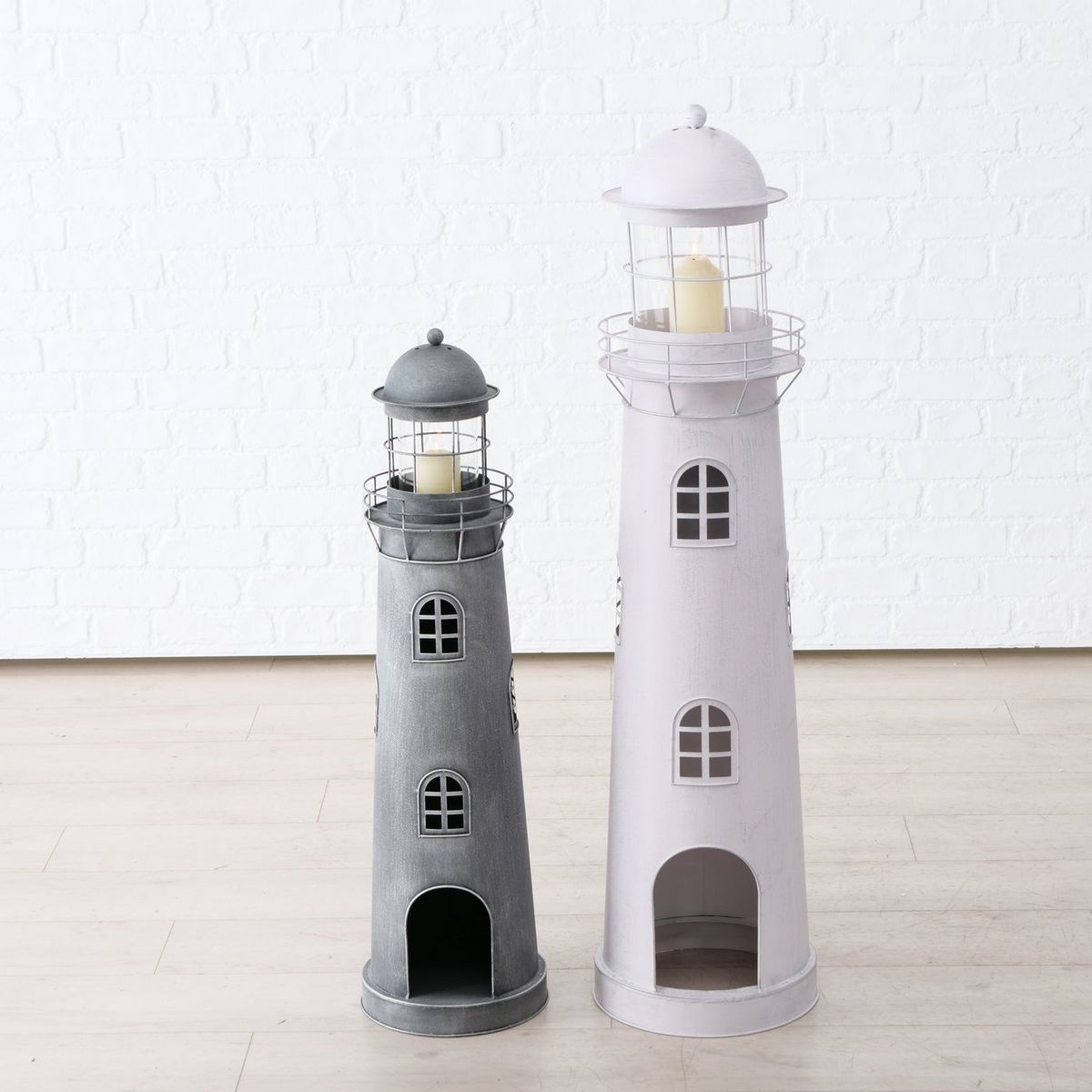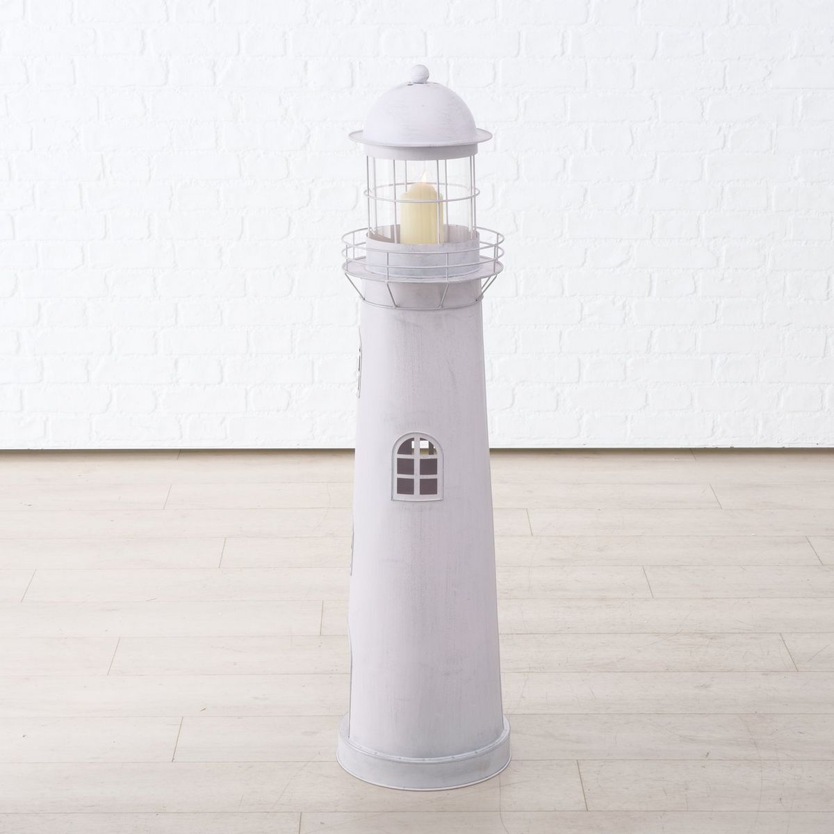 ΦΑΡΟΣ Set/2 Sylt ΓΚΡΙ ΛΕΥΚΟ H90/117cm, D25/30cm ΜΕΤΑΛΛΟ ΓΥΑΛΙ