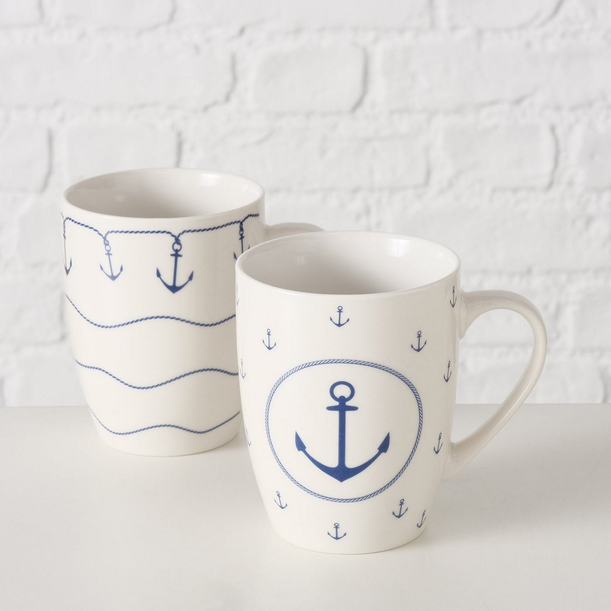 ΚΟΥΠΑ 2/ass ΣΧΕΔΙΟ ΑΓΚΥΡΑ Busum 350ml D8,5 H10,50cm Dishwasher proof ΕΚΡΟΥ ΜΠΛΕ ΠΟΡΣΕΛΑΝΗ New Bone