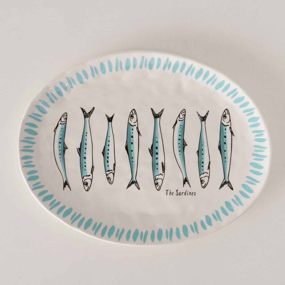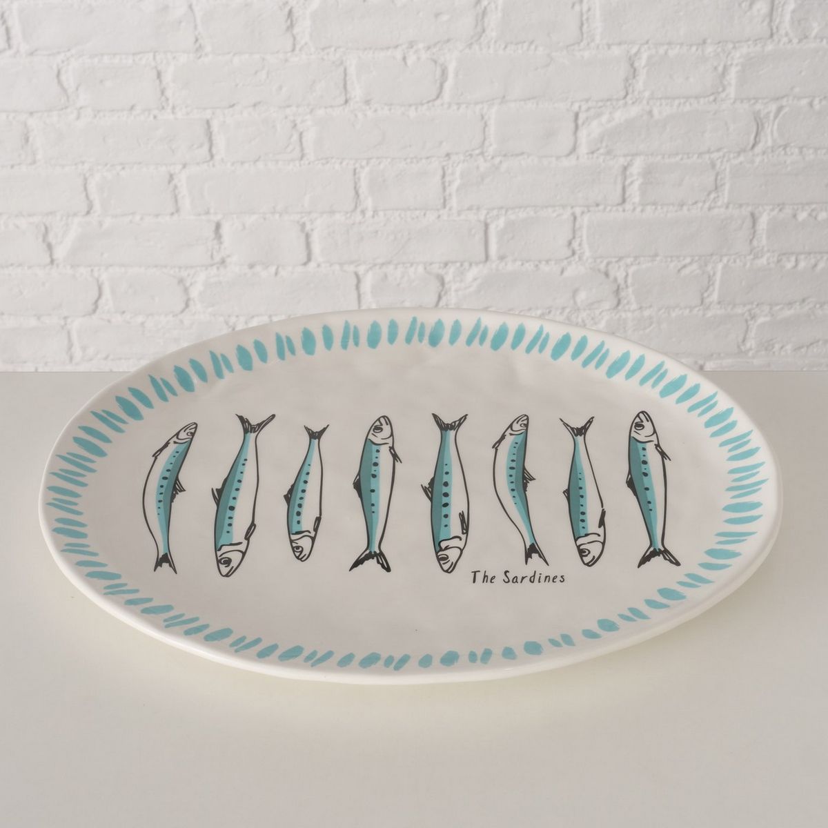 ΠΙΑΤΟ ΣΕΡΒΙΡΙΣΜΑΤΟΣ ΟΒΑΛ ΣΧΕΔΙΟ Sardine, ΛΕΥΚΟ ΤΙΡΚΟΥΑΖ 39Χ31Χ3cm ΚΕΡΑΜΙΚΟ